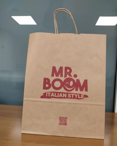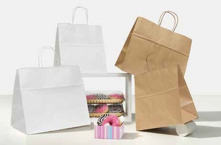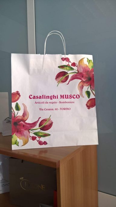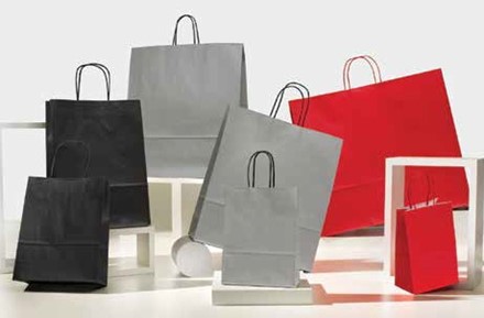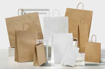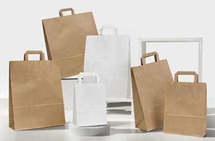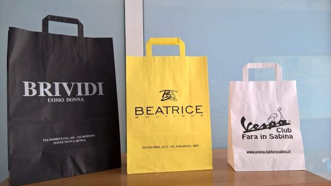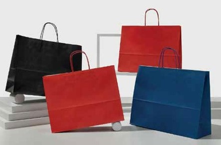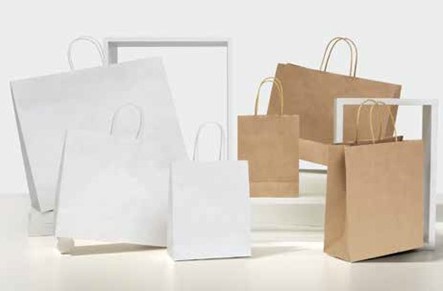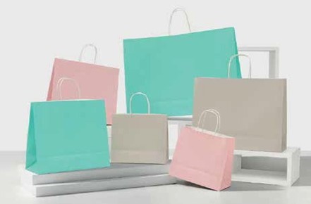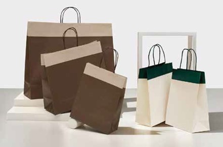 SHOPPER CON LAVORAZIONE IN AUTOMATICO CON MANIGLIA IN CARTA PIATTA O CORDINO TRECCIATO.